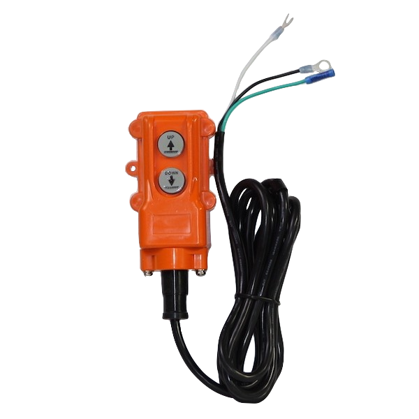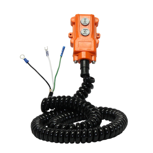 17719 is a 3 wire harness with a 2 push button control box. The control box wire is made with an oil resistant jacket, ideal for hydraulic fluid environments. This control is designed for single acting power units. The 17719 is weather proof and has a safety interlock preventing both buttons from being depressed at the same time.