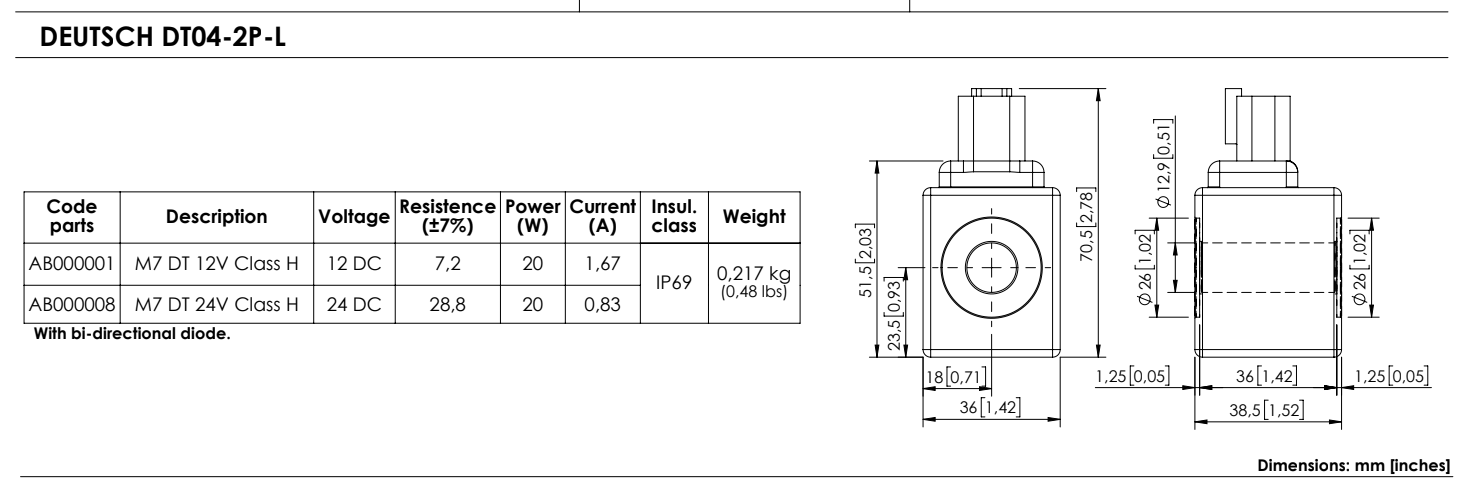 COIL, 12VDC, 20 WATT, DEUTSCH, FOR 1/2" STEM