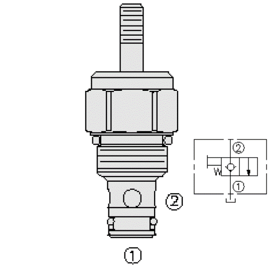 The MP08-20X is a 2-way, manual pull to shift, spring return, screw-in, cartridge style directional hydraulic valve.